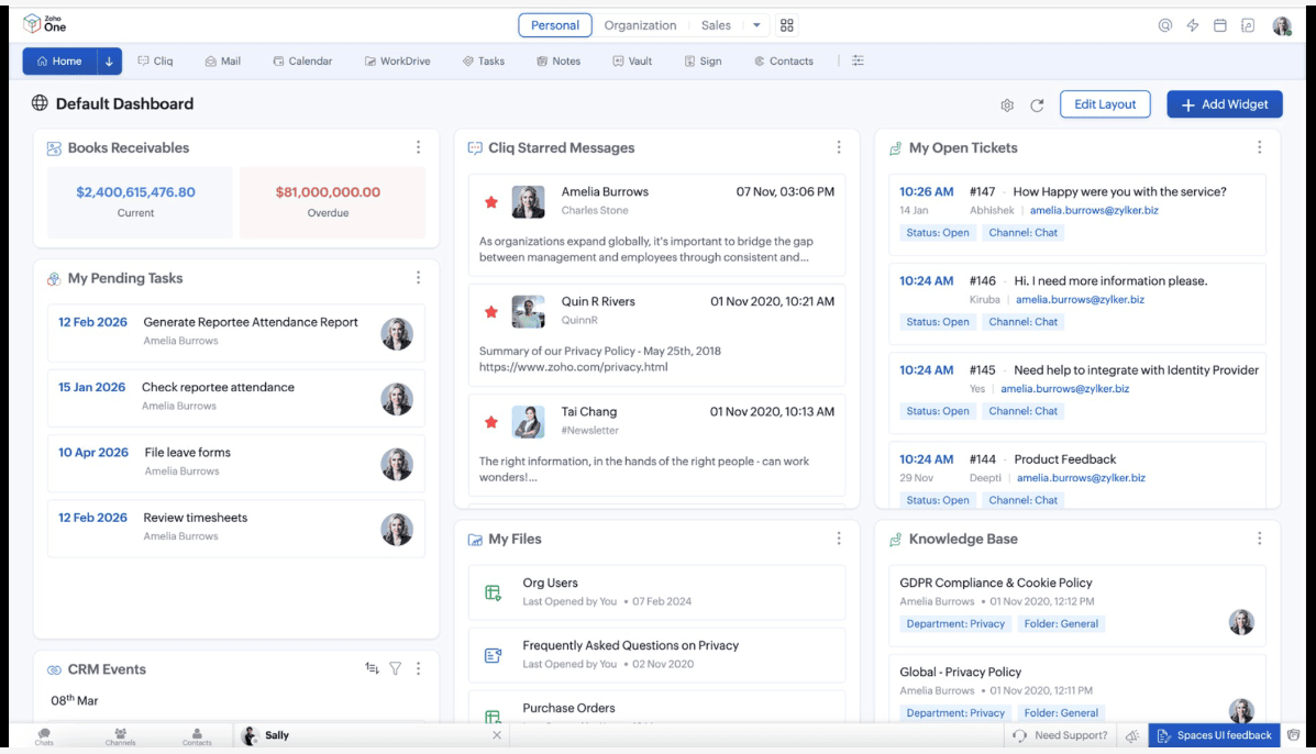 New AI functionality including use of Zoho’s AI assistant Zia across the platform, allows businesses to build widgets and manipulate and summarize data.