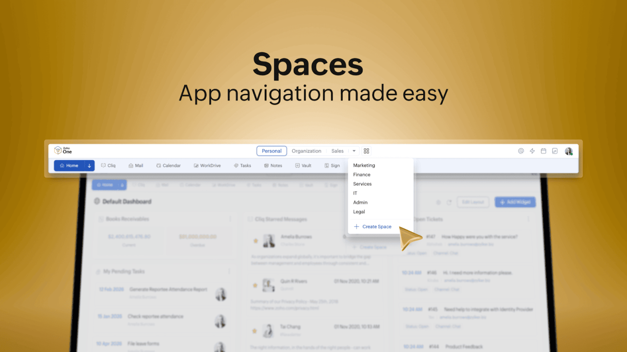 No longer do you work in Zoho Service Plus or Zoho People Plus or Zoho Marketing Plus. No longer do you work in sales or finance or HR.